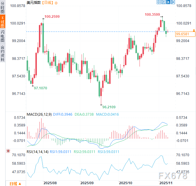 周一美元指数并未延续前三个交易日的跌势,而是小幅回升0.11%至99.66。