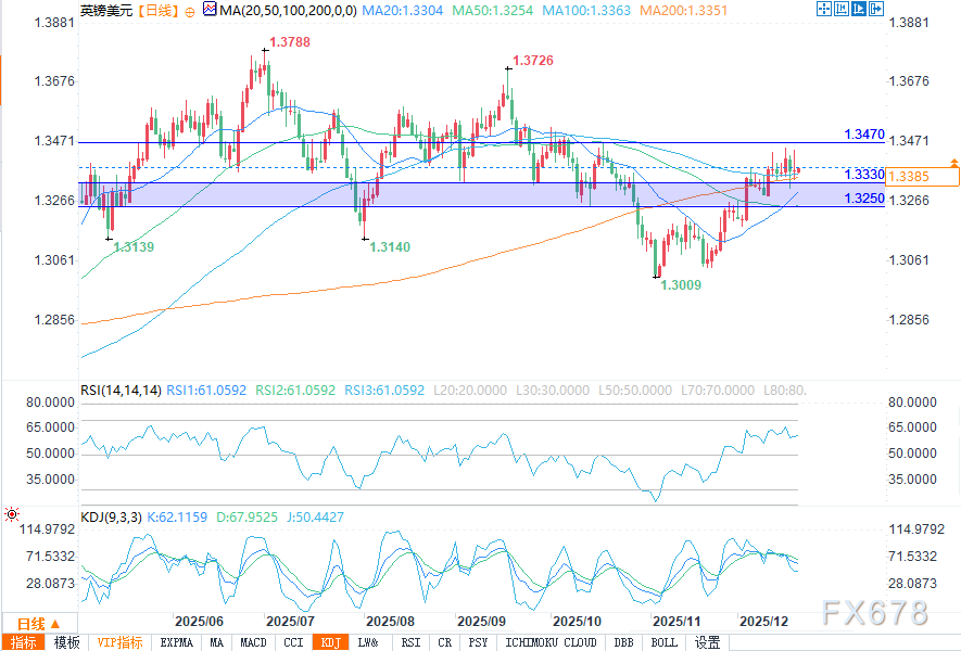 只要1.3250—1.3300的支撑区间有效守住,汇价的阻力最小运行路径仍将向上。一旦突破1.3470关键阻力位,即可确认新一轮上涨波段正式启动。