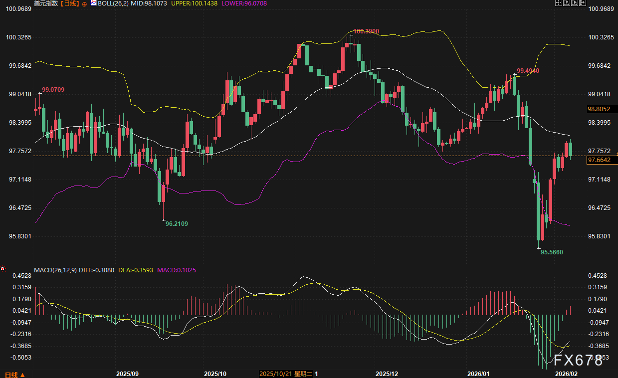 汇通财经APP讯——2月2日-2月6日当周,全球外汇市场在多重因素的拉锯下呈现显著分化格局。美元指数在周中强势上行,尽管周五有所回调,但仍录得可观周涨幅,其背后是市场对美联储政策路径的重新定价以及对美国经济数据,特别是劳动力市场的深度关注。与此同时,非美货币走势各异:欧元与英镑在各自央行鸽派姿态下承压;日元则在日本大选前夕遭遇重挫,成为本周表现最疲软的主要货币。地缘政治不确定性、主要央行的政策信号以及即将到来的关键经济数据,共同构成了本周外汇市场跌宕起伏的主旋律。